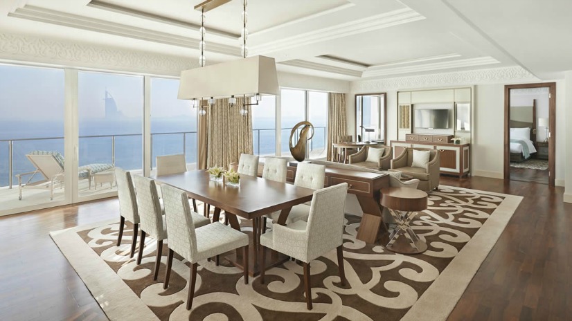 If you want to live like a prince or princess during your stay then consider staying in the Royal Suite. This beautiful suite features stunning views of the Arabian Gulf, as well as access to the exclusive Regency Club.